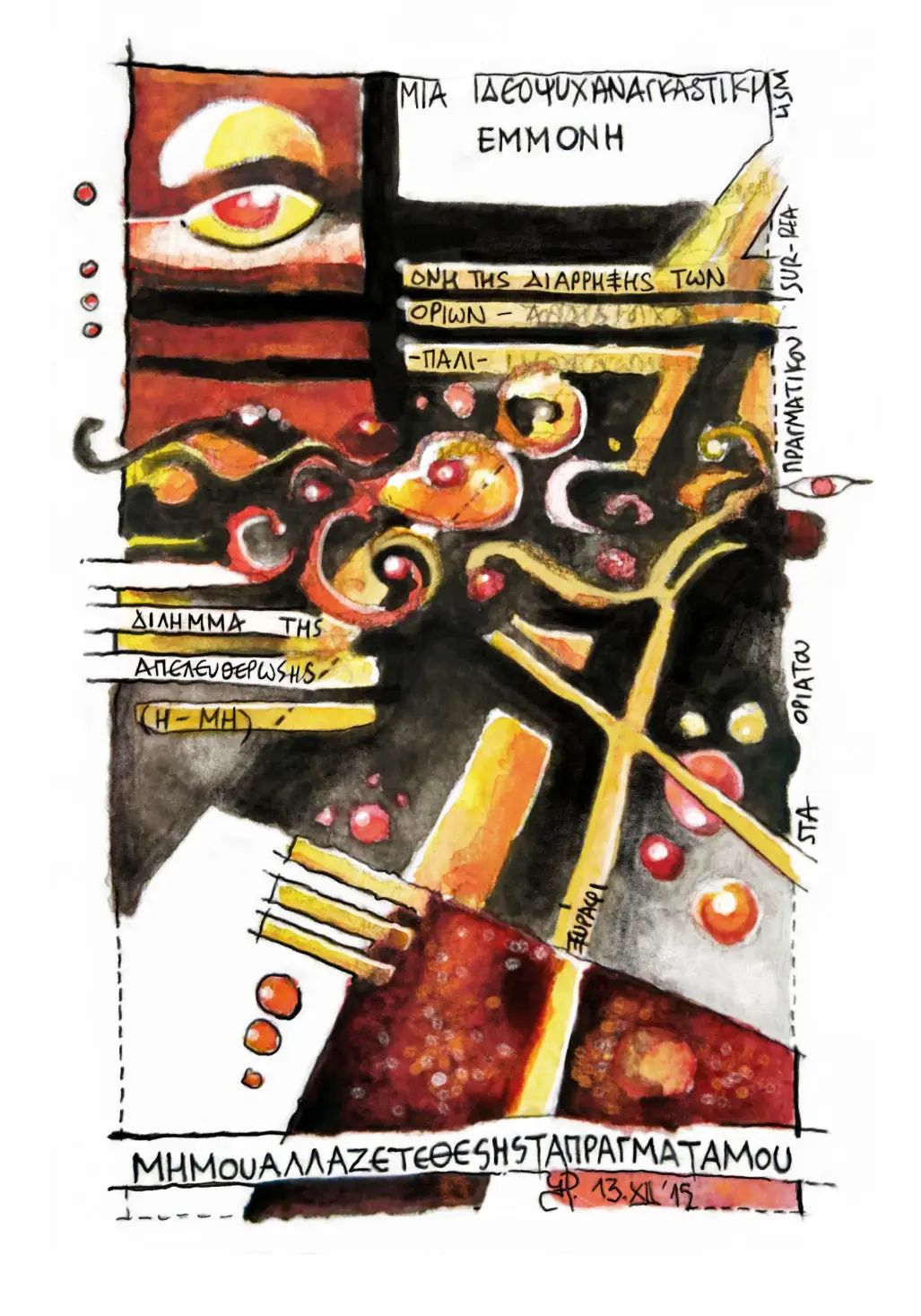 Από παιδί είχα μια εμμονή με την Τάξη. Η χωρίς τάξη ζωή μου (για λόγους οικογενειακούς και υγείας) ζητούσε απεγνωσμένα να μπει σε κουτάκια. Να βρεί όρια και ταυτόχρονα να ξεφύγει από αυτά. Άρα εδώ ο πρωταγωνιστής μου εδώ είναι «Μια ιδεοψυχαναγκαστική εμμονή. Η εμμονή της διάρρηξης των ορίων. Το δίλημμα της απελευθέρωσης ή-μη.» Με ένα ξυράφι χαράζω τα όρια (μεταξύ Πραγματικού και Φαντασιακού). «Στα όρια του Πραγματικού Sur-Real» λοιπόν, και «μη μου αλλάζετε θέση στα πράγματά μου»!