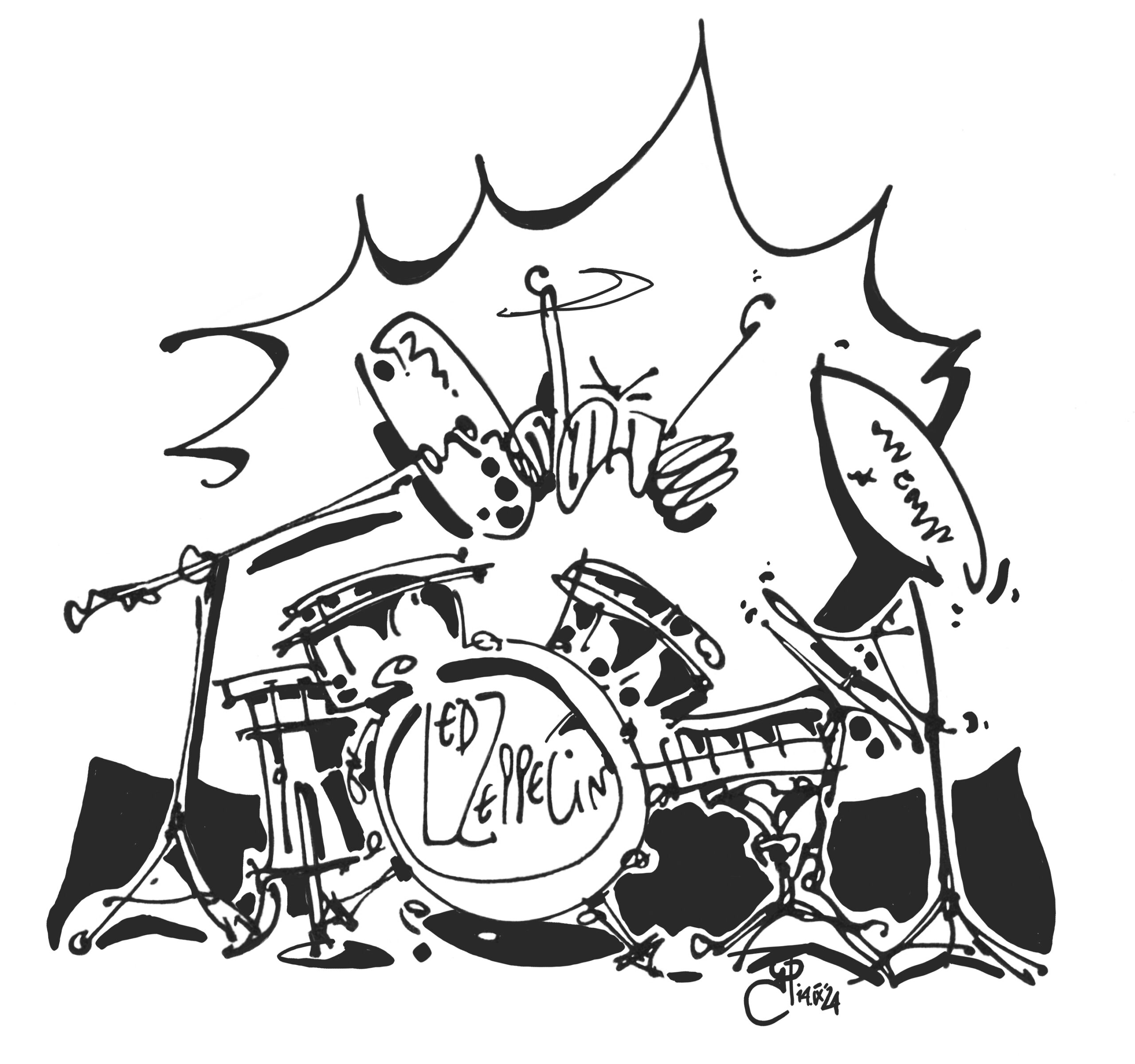 Ο ντράμερ δε χρειάζεται συστάσεις. Λατρεύω το Ρυθμό στη μουσική, στα κτίρια, στη ζωγραφική. Τα ντραμς είναι η αγάπη μου. Θυμάμαι ένα απόγευμα, στο Πολυτεχνείο, είχαμε ένα μάθημα, «Ενεργειακό Σχεδιασμό» με έναν τύπο πολύ πολύ βαρετό. Έφυγα από τη σχολή, πήγα στο κέντρο και αγόρασα το πρώτο μου σετ τύμπανα. Το πρωτότυπο σκίτσο, βρώμικο και μπλεγμένο με άπειρα άλλα σκίτσα στο ίδιο χαρτί, ένα σκίτσο με 2-3 γραμμές όλο κι όλο, το αγαπούσα ανέκαθεν. Ως φόρος τιμής στο παλιόσκίτσο , το καθάρισα, του έδωσα τη δύναμη που του χρειάζεται, και το φοράω με χαρά. Αν ήταν άνθρωπος θα ήταν σίγουρα ο Phil Collins, μπορεί όμως και ο John Bonham. (το πρωτότυπο σκίτσο, το βρώμικο, το έχω αναρτήσει στο Blog - τα Νέα μας, στο άρθρο Η Γέννηση του Drummer)