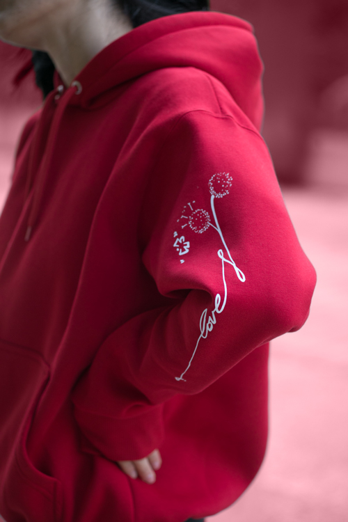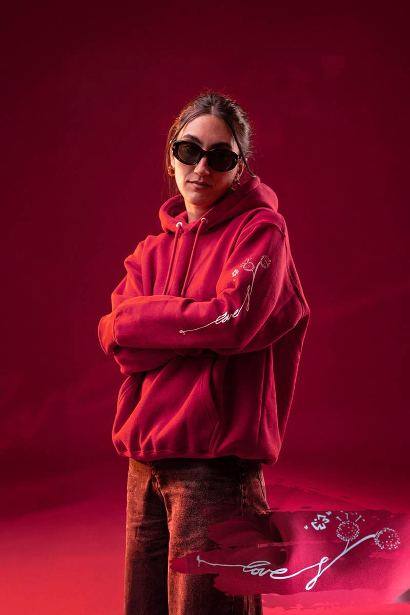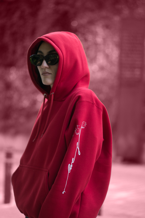 Φούτερ με κουκούλα, με σχέδιο Love Tattoo από τον Χάρη Παπαϊωάννου. Εμπνευσμένο από ένα λεπτό σχέδιο για τατουάζ με θέμα τον “κλέφτη” και το νεραϊδάκι που ζει μέσα του.