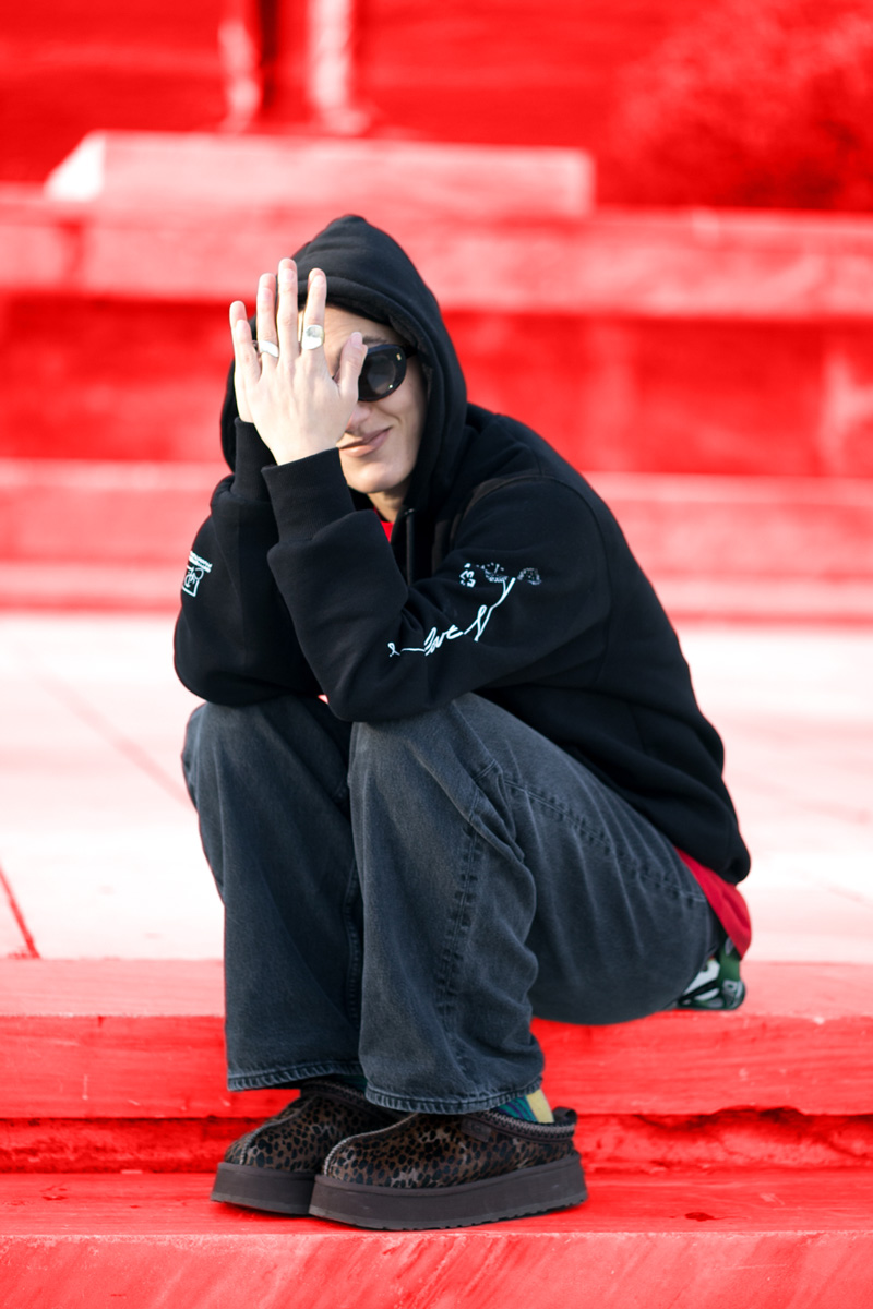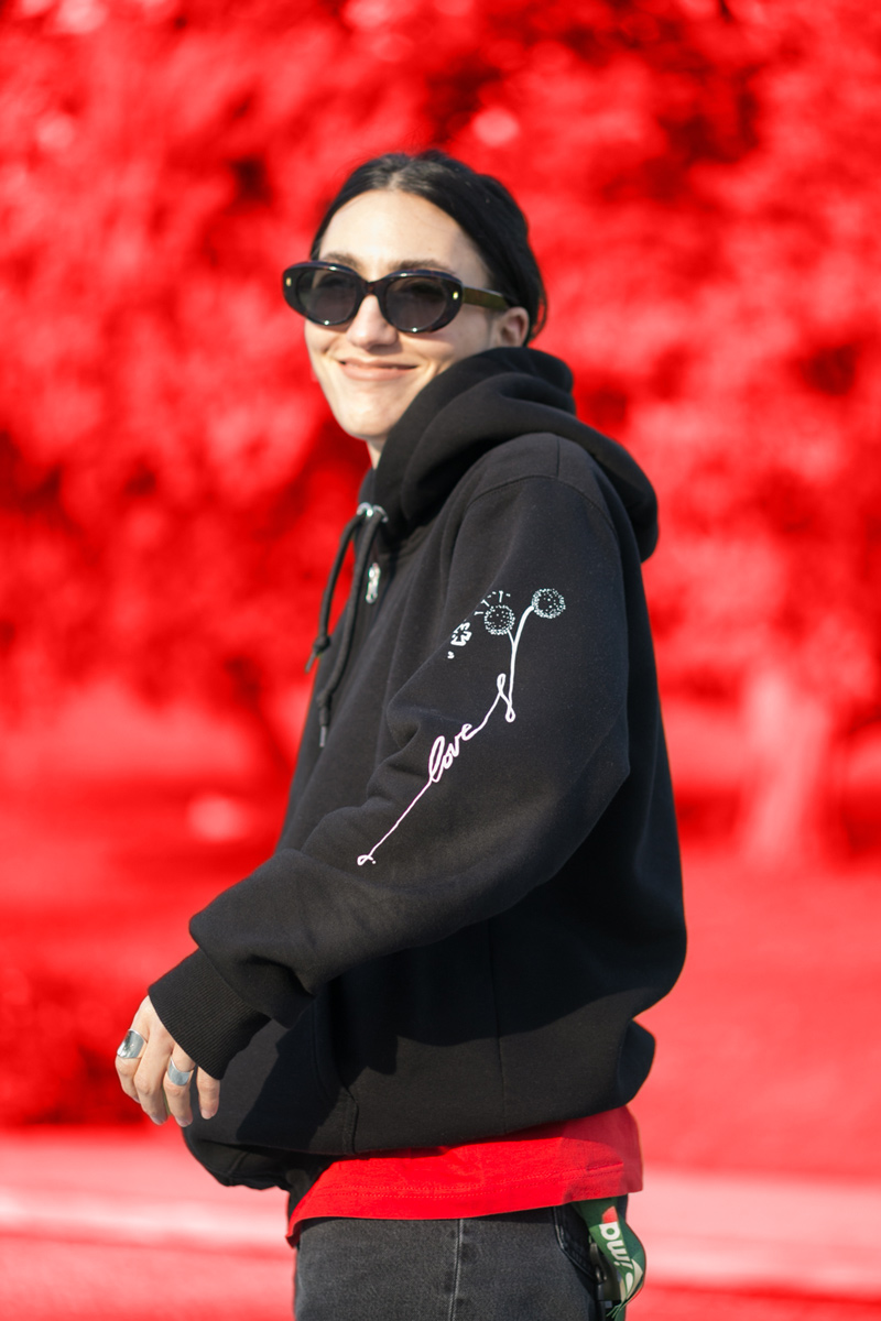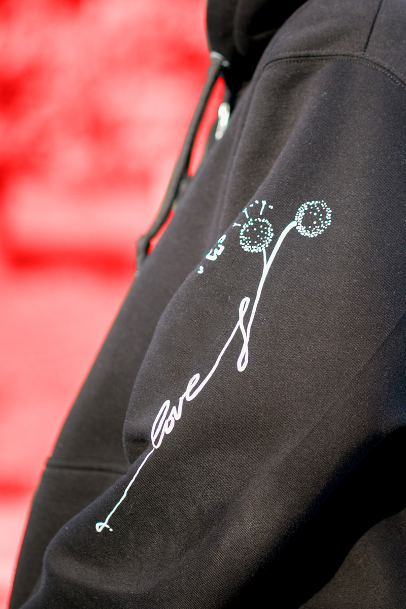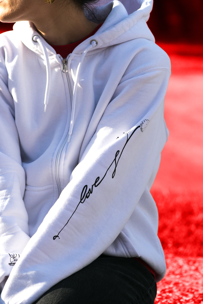 Φούτερ με κουκούλα και φερμουάρ, με σχέδιο Love Tattoo από τον Χάρη Παπαϊωάννου. Εμπνευσμένο από ένα λεπτό σχέδιο για τατουάζ με θέμα τον “κλέφτη” και το νεραϊδάκι που ζει μέσα του.
